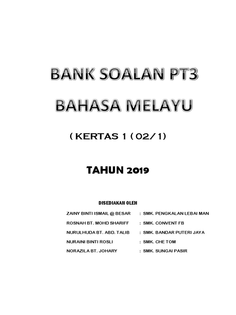 . Bahasa Melayu BM Inggeris Matematik Sains RBT. Teknik Menjawab Bahasa Melayu BM SPM Kertas 1 dan 2 KSSM PU Penukaran Bahasa Melayu Klasik kepada Bahasa Melayu Standard PU. Koleksi Kertas Soalan Percubaan PT3 2019 2020.